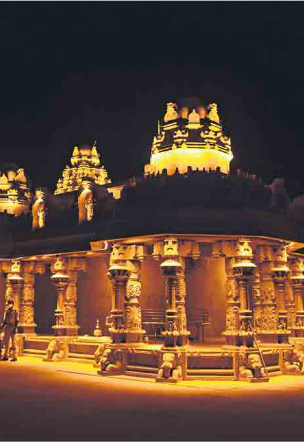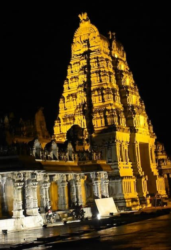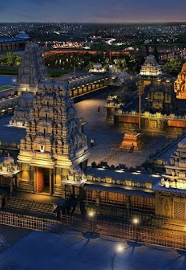 It harmonizes traditional South Indian temple aesthetics with modern construction techniques, creating a space that honors historical design principles while accommodating contemporary needs.